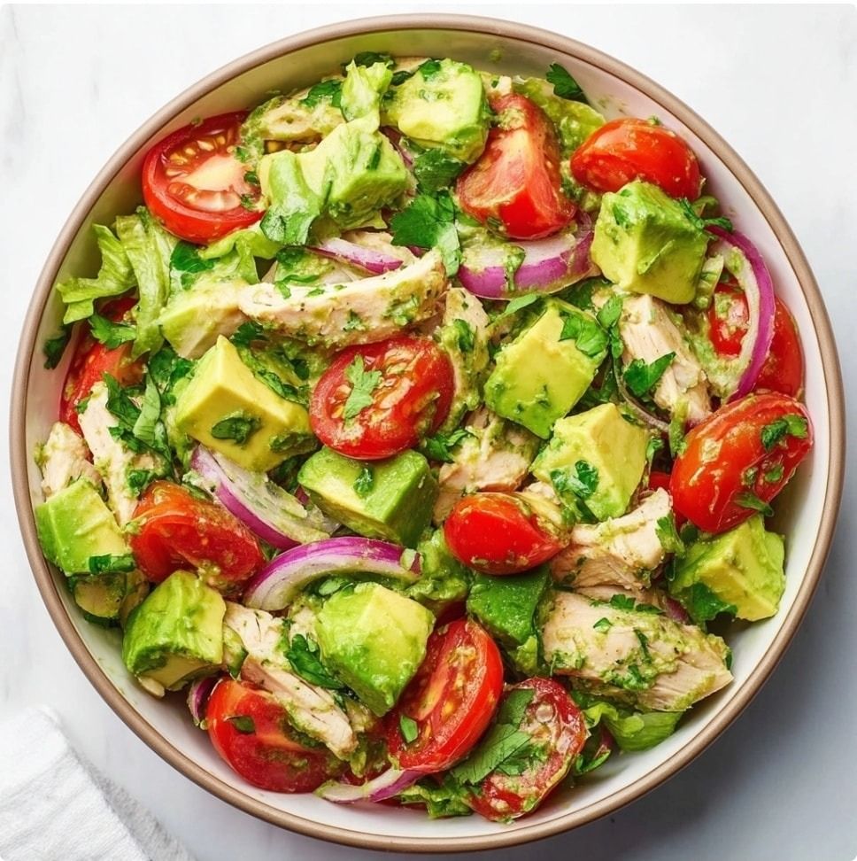 This Avocado Chicken Salad with Cherry Tomatoes is the definition of a clean, quick, and satisfying meal. Juicy chicken, creamy avocado, and sweet cherry tomatoes come together in a light dressing to create a salad that’s loaded with flavor and nutrients—without taking more than 15 minutes to prepare.