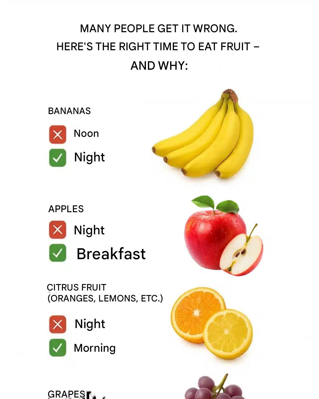 We often hear this advice: “Eat 5 fruits and vegetables a day!” Yes, but at what time of day? Because while fruits are excellent for your health, their effect on digestion, energy, and sleep varies depending on the time of day. As a result, a beneficial fruit eaten at the wrong time of day can sometimes disrupt the body. Here are the ideal times to eat 15 common fruits… and why it can make a difference.