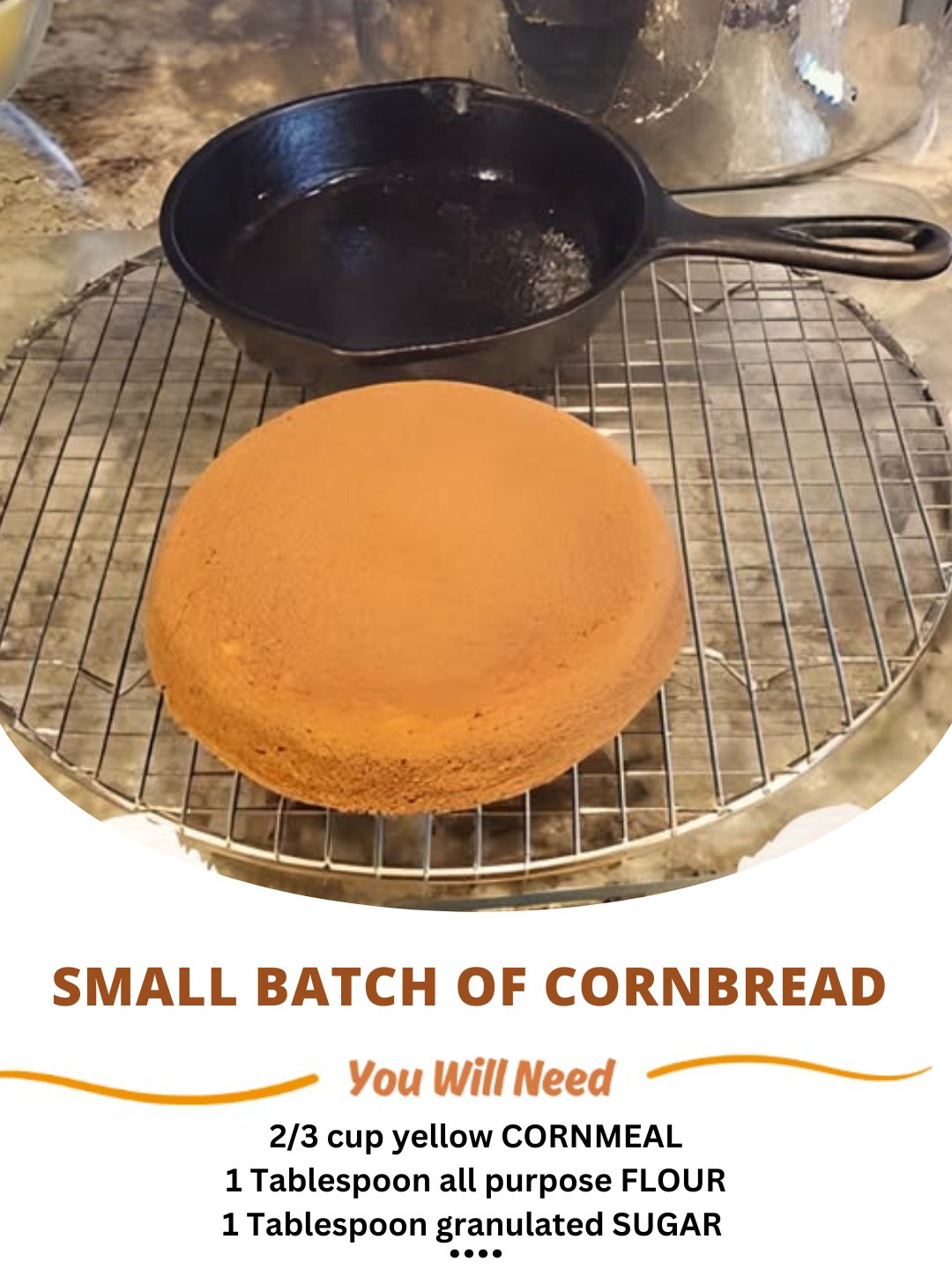 Ingredients (Makes 1 small cornbread loaf / serves 1–2):